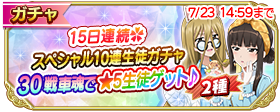 7月9日(水)15時より、『★5 生徒1人確定 10連生徒ガチャ』を2種類開催いたします!