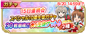 【8/20 14:59まで】15日連続!購入分戦車魂30で『★5 生徒1人確定 10連生徒ガチャ』2種類開催!