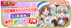【9/3 14:59まで】15日連続!購入分戦車魂30で『★5 生徒1人確定 10連生徒ガチャ』2種類開催!