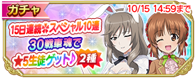 【10/15 14:59まで】15日連続!購入分戦車魂30で『★5 生徒1人確定 10連生徒ガチャ』2種類開催!