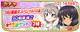 【1/21 14:59まで】15日連続!購入分戦車魂30で『★5 生徒1人確定 10連生徒ガチャ』2種類開催!