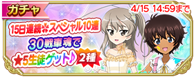 【4/15 14:59まで】15日連続!購入分戦車魂30で『★5 生徒1人確定 10連生徒ガチャ』2種類開催!